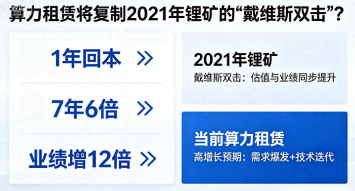 如果不知道,点赞+转发+留言:1年回本,7年6倍,业绩增12倍——算力租赁将复制2021年锂矿的“戴维斯双击”?